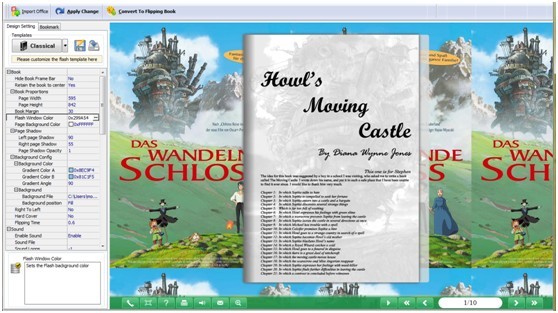 It is easy to operate. Although there is a lot of setting function in the Design setting list, it is really quite simple to operate. Just take you three steps to convert word file into flipping book. First of all, import your word file. Then click “Apply change” to save changes. Finally, choose a proper format to convert to flipping book. End here, a flipping book is finished.