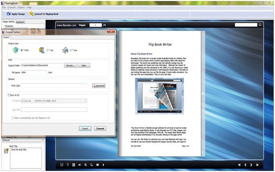 When you finish editing your file, let’s move to the next function of flip book writer, converting to flipping book. Here flip book writer is unable to convert into App format, it means if you want to make it play on your app product, you need to convert format again. When you are in flipping book selection window, you can add background, music, change the bar color and so on. You can make your flipping book as wonderful as you like.