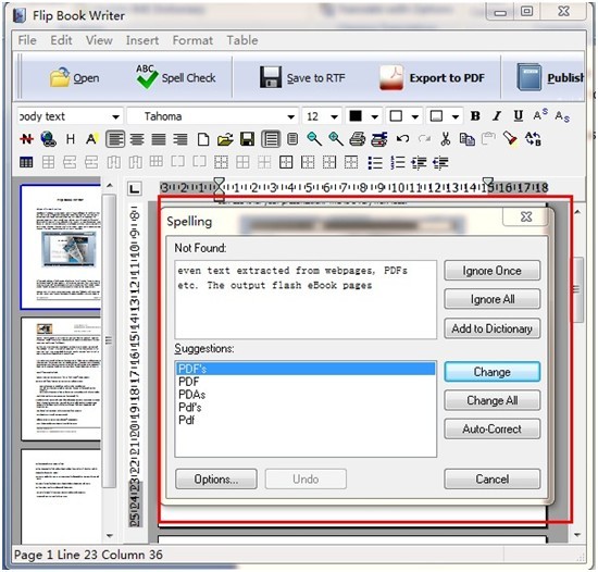Now, have a try of flip book writer to edit your file and check spelling to make sure there’s no stupid mistake in your file.